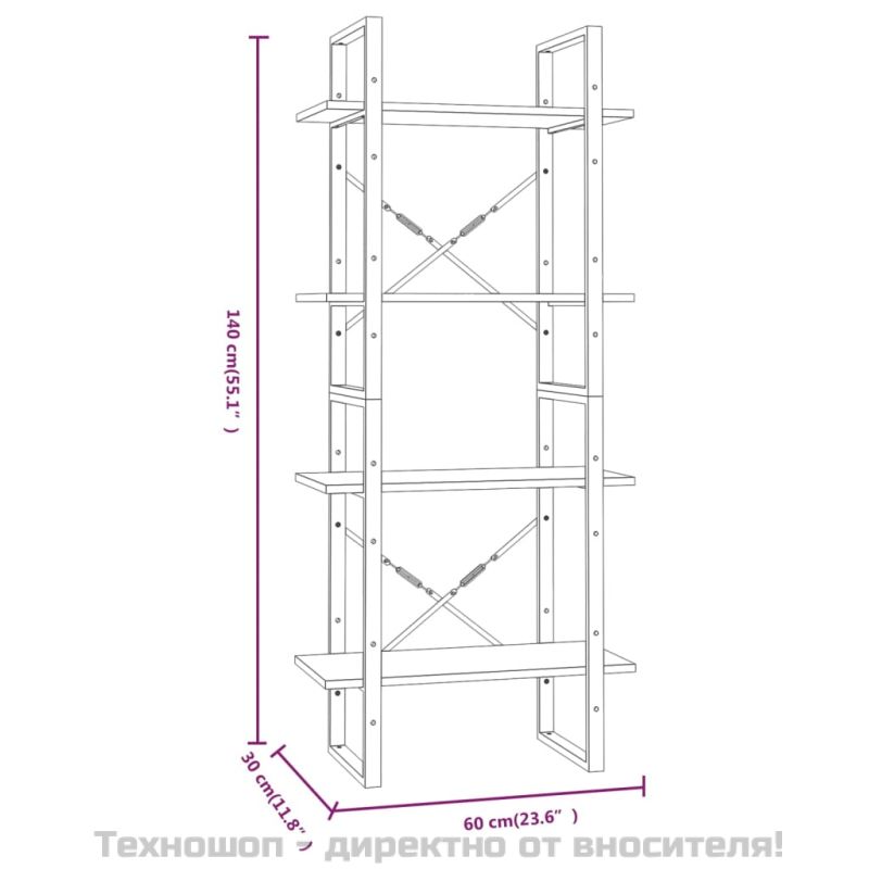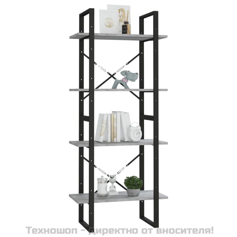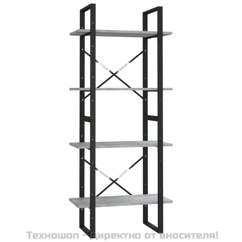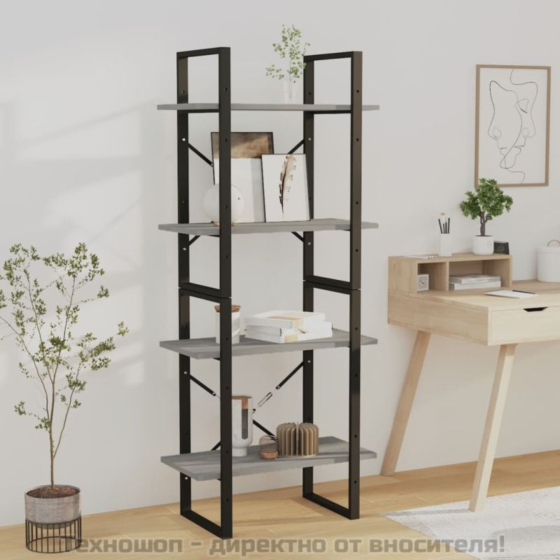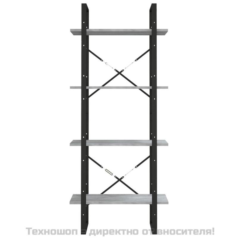 Библиотека на 4 нива, сив сонома, 60x30x140 см, инженерно дърво