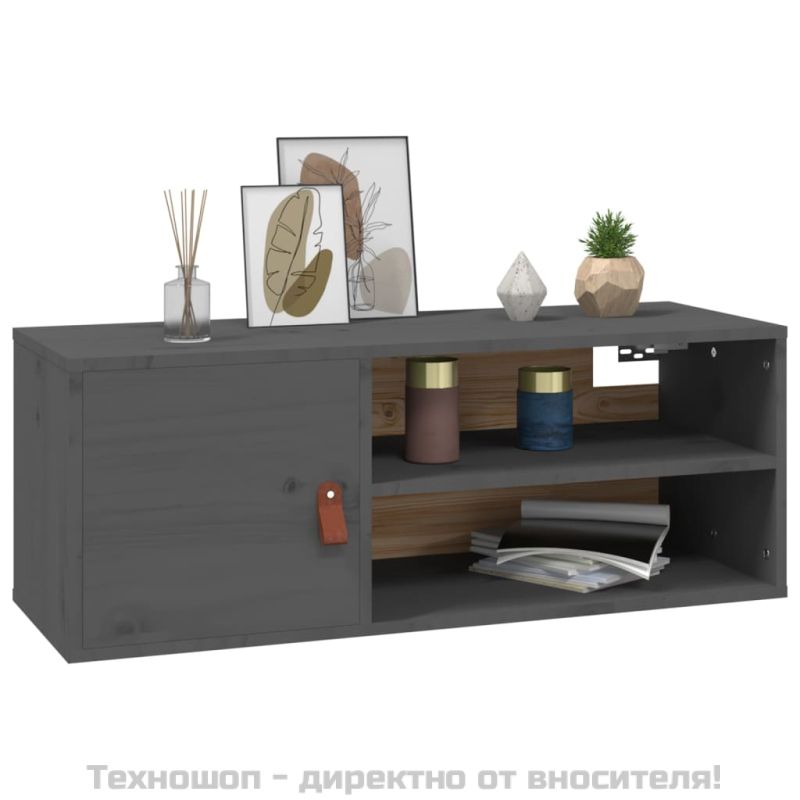 Стенен шкаф, сив, 80x30x30 см, борово дърво масив