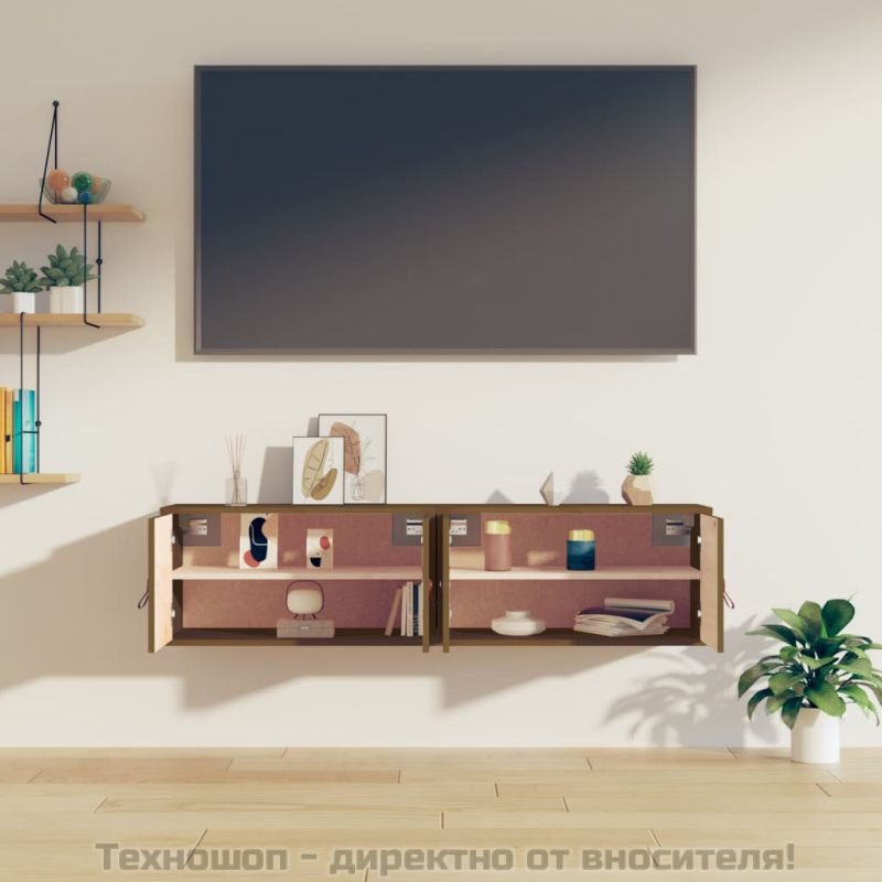 Стенни шкафове, 2 бр, меденокафяви, 60x30x30 см, бор масив