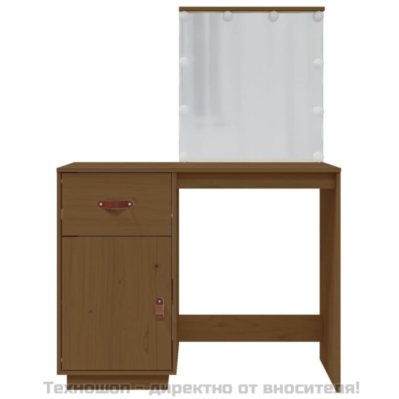 Тоалетка с LED, Меденокафяв, 95x50x133,5 см, борово дърво масив
