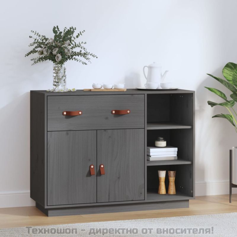 Сайдборд, сив, 98,5x40x75 см, бор масив