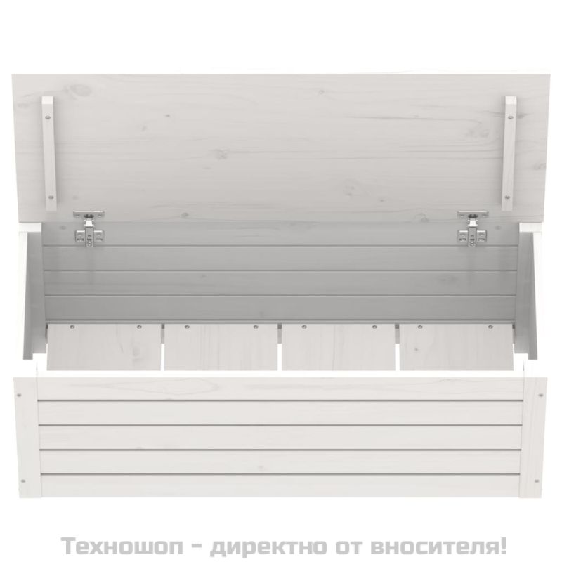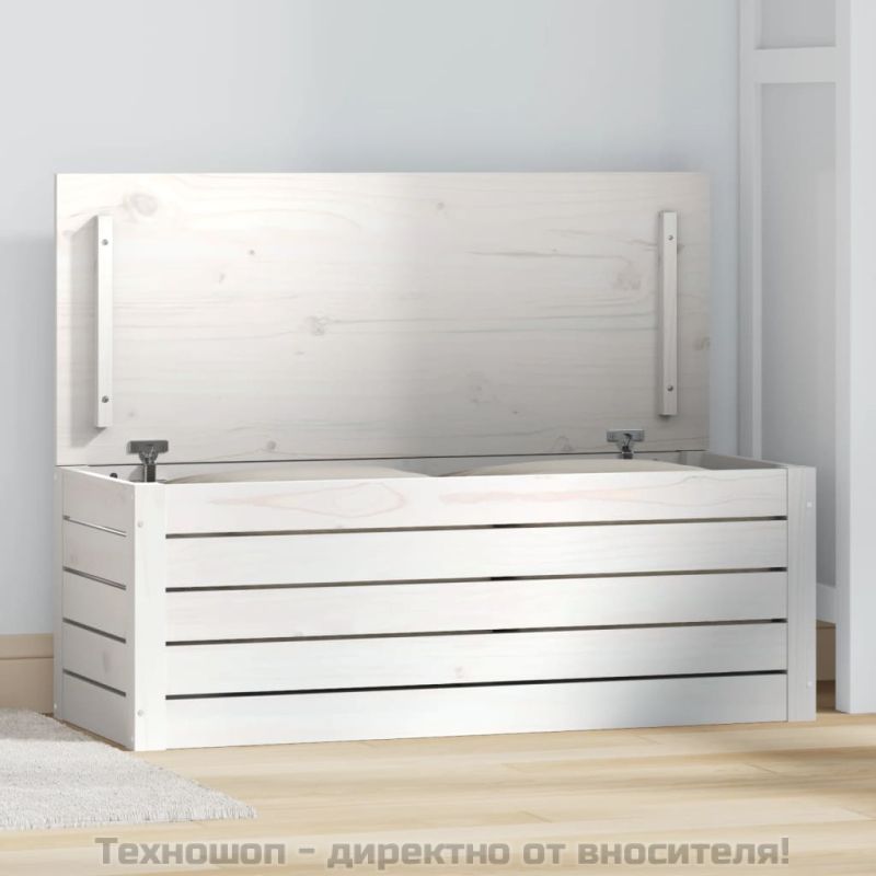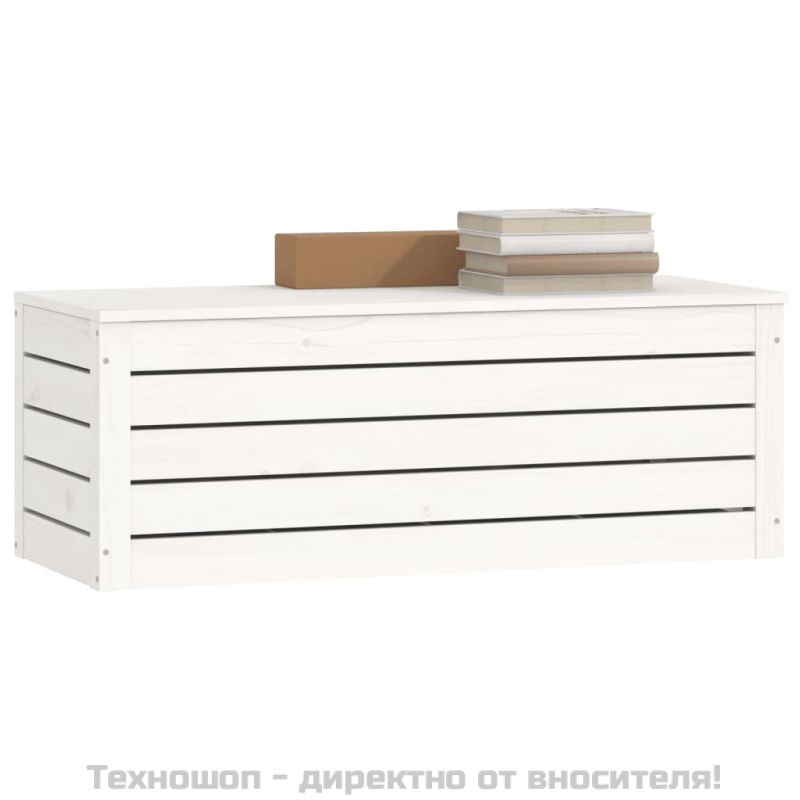 Кутия за съхранение, бяла, 89x36,5x33 см, борово дърво масив