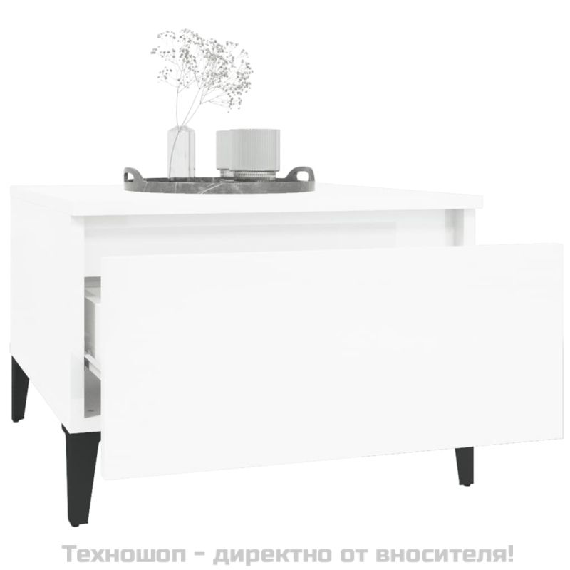 Странична маса, бял гланц, 50x46x35 см, инженерно дърво