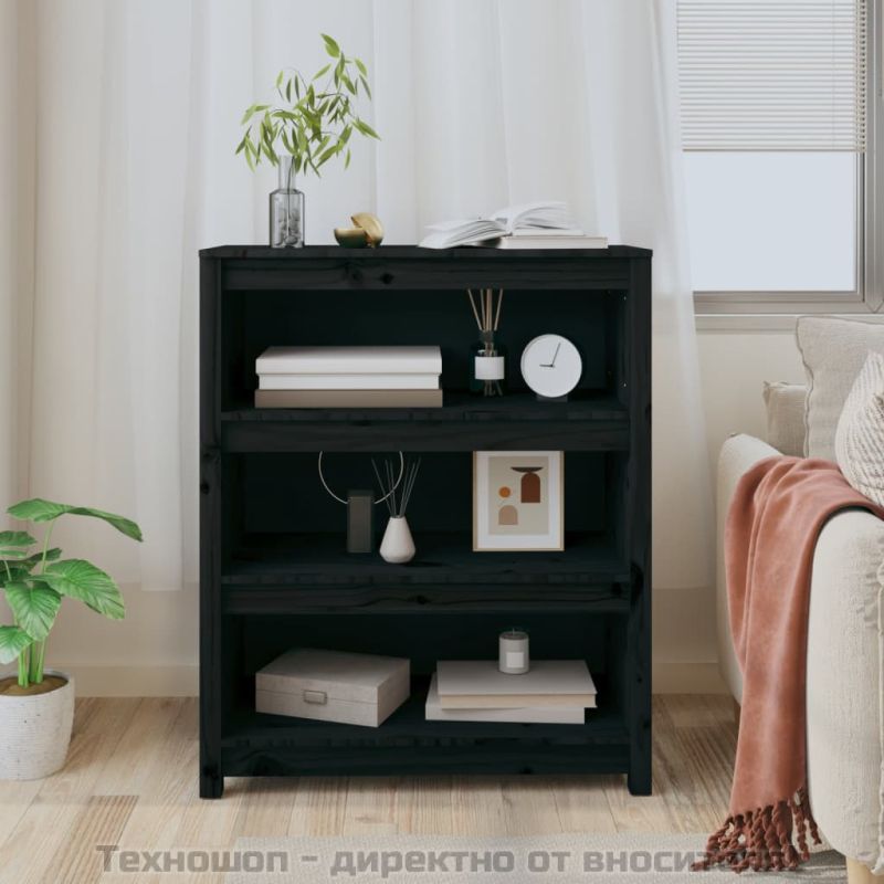 Библиотека, черна, 80x35x97 см, бор масив