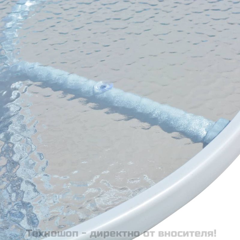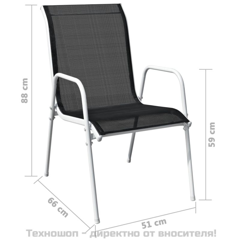 Този изискан комплект градински мебели ще се превърне в централната точка на вашата градина, вътрешен двор или трапезария. Комфортните столове са изработени от висококачествена прахово боядисана стомана. Благодарение на здравата тъкан textilene, нашите столове са устойчиви на атмосферни влияния и лесни за почистване. Столовете могат да се стифират, за да се спести място. Масата е с дебелина 5 мм, изработена от закалено стъкло, върху което можете да поставите напитки, леки закуски или декоративни елементи. Също така има здрава прахово боядисана стоманена рамка, която е издръжлива и лесна за поддръжка. Монтажът е лесен. Доставката включва 1 маса и 2 стола с textilene. Забележка: Препоръчваме покриването на комплекта по време на дъжд, сняг или скреж.