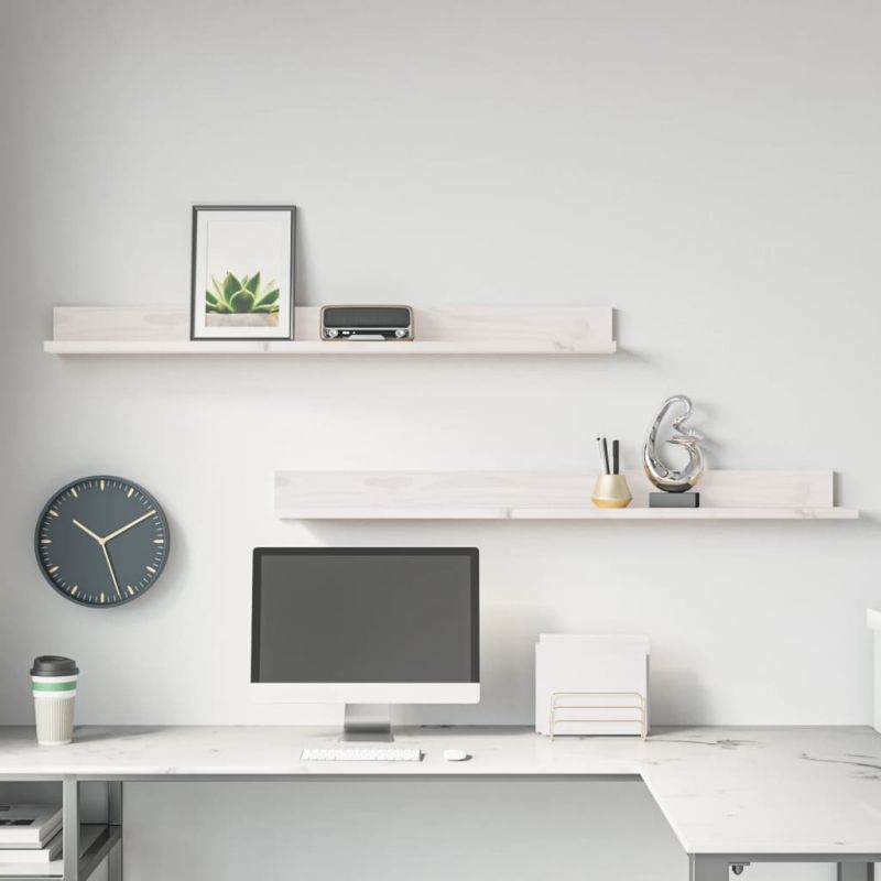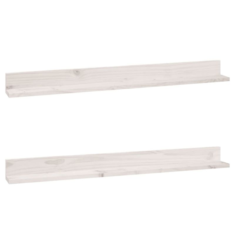 Стенни рафтове, 2 бр, бели, 110x11x9 см, масивно борово дърво