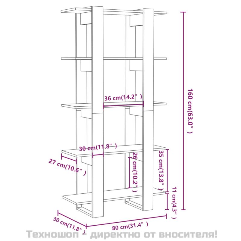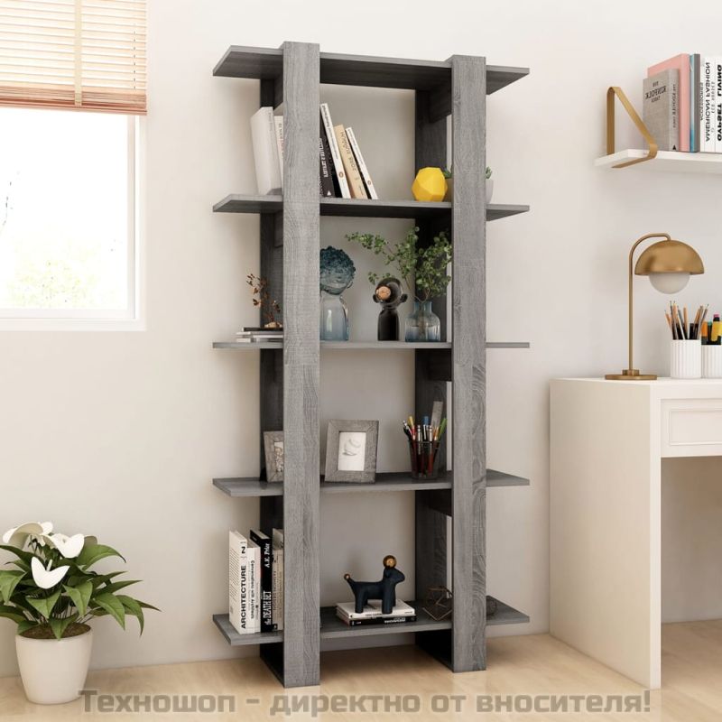 Библиотека/разделител сив сонома 80x30x160 см инженерно дърво