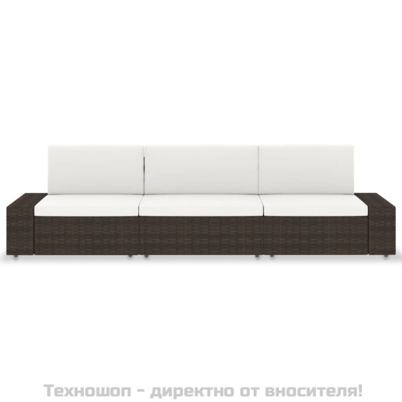 Триместен модулен диван, полиратан, кафяв