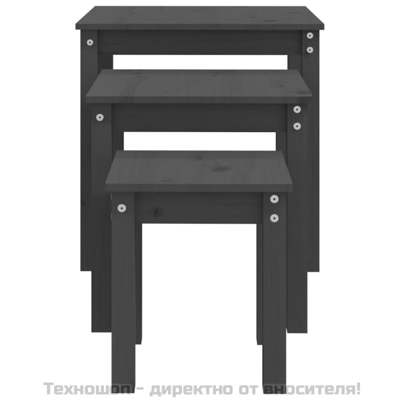 Тези дървени стифиращи маси са перфектната алтернатива за малки апартаменти или за места с по-ограничено пространство. Модерният дизайн ги прави шикозно допълнение към вашия хол или спалня. Масивна борова дървесина: Масивната борова дървесина е красив естествен материал. Боровата дървесина е с продълговати шарки, а чеповете придават на материала характерния му рустик вид.Стифиращ дизайн: Благодарение на разликата в размера, тези стифиращи маси могат не само да отговорят на многобройните ви нужди, но също така осигуряват допълнително пространство и лесно съхранение, когато по-малките маси са скрити под по-голямата.Мултифункционални маси: Стифиращите масички могат да се използват във всекидневната за поставяне на вашите напитки или всякакви други предмети, които искате да са ви подръка. Можете освен това да използвате една от тях в спалнята си като уникално нощно шкафче! Внимание:За да се предотврати преобръщане, този продукт трябва да се използва с предоставената приставка за стена. Забележка:Всеки продукт се доставя с ръководство за сглобяване в кашона за лесно сглобяване.