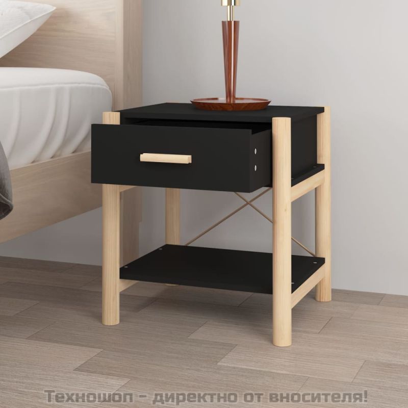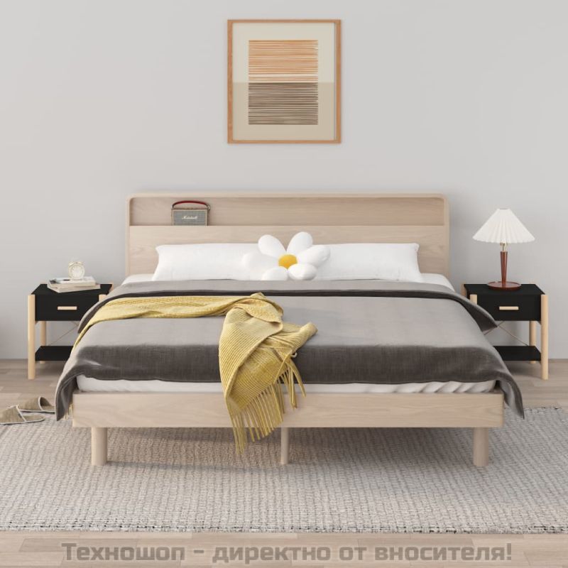 Нощни масички, 2 бр, черни, 42x38x45 см, инженерно дърво