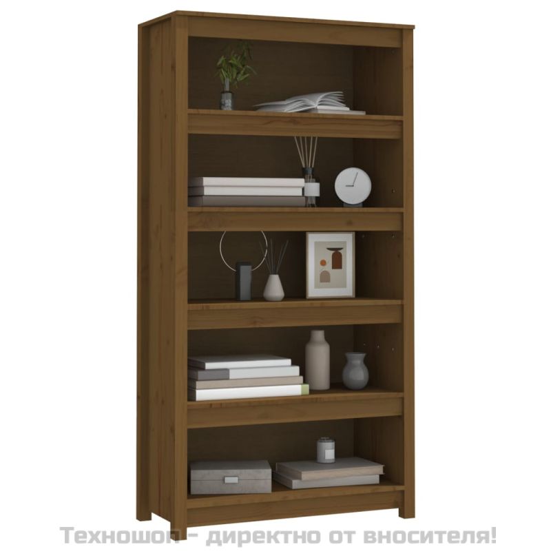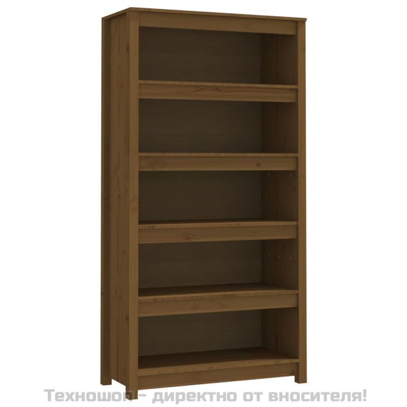 Библиотека, меденокафява, 80x35x154 см, бор масив