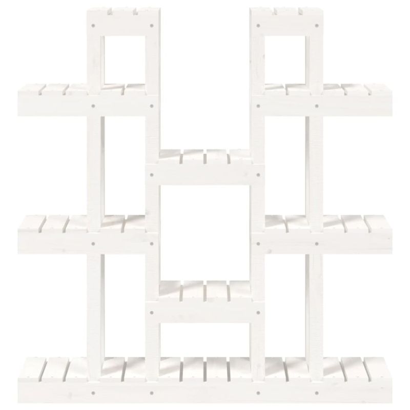 Поставка за цветя, бяла, 104,5x25x109,5 см, бор масив