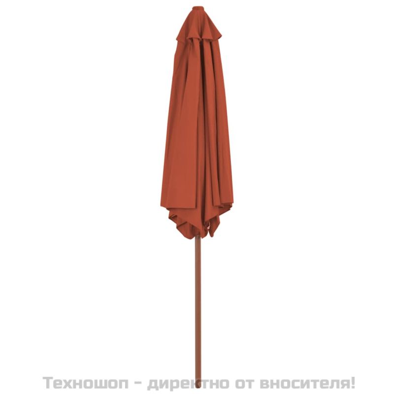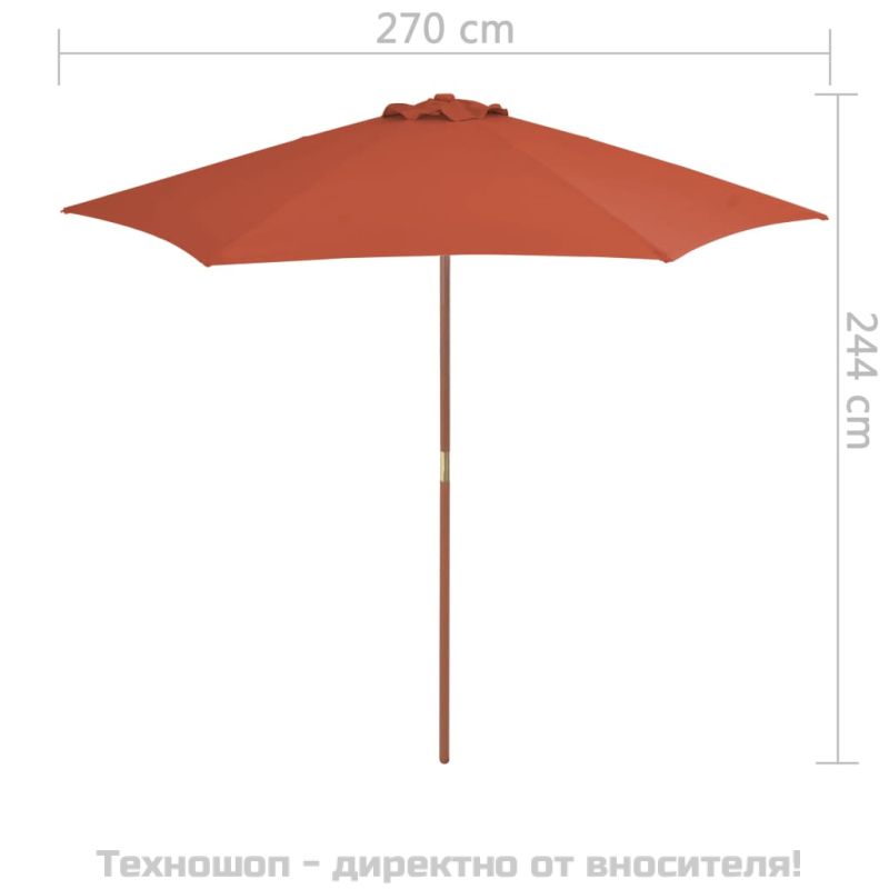 Градински чадър с дървен прът, 270 см, теракота