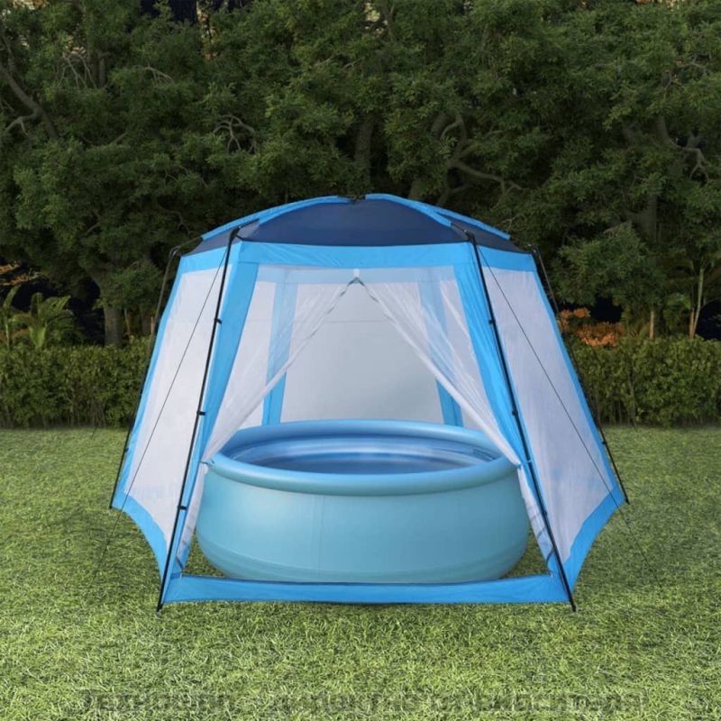 Палатка за басейн, текстил, 500x433x250 см, синя