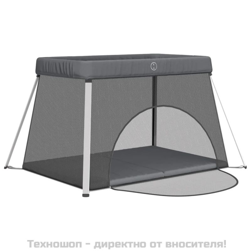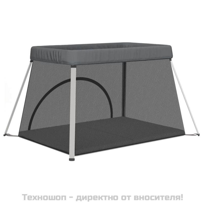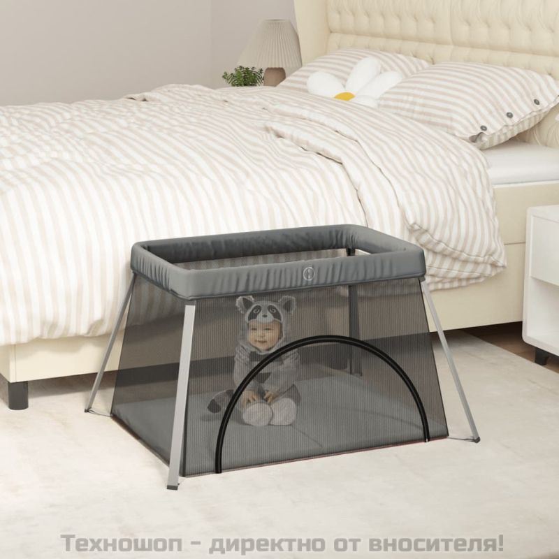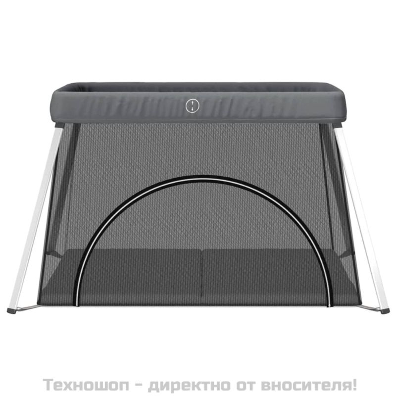 Бебешка кошара с матрак, тъмносива, ленен плат
