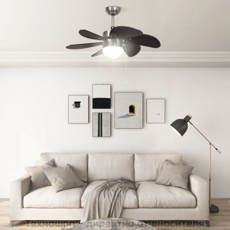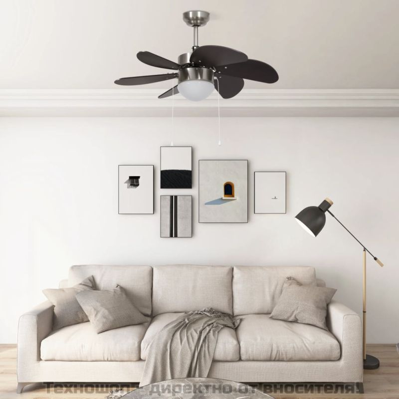 Вентилатор за таван с лампа, 76 см, тъмнокафяв