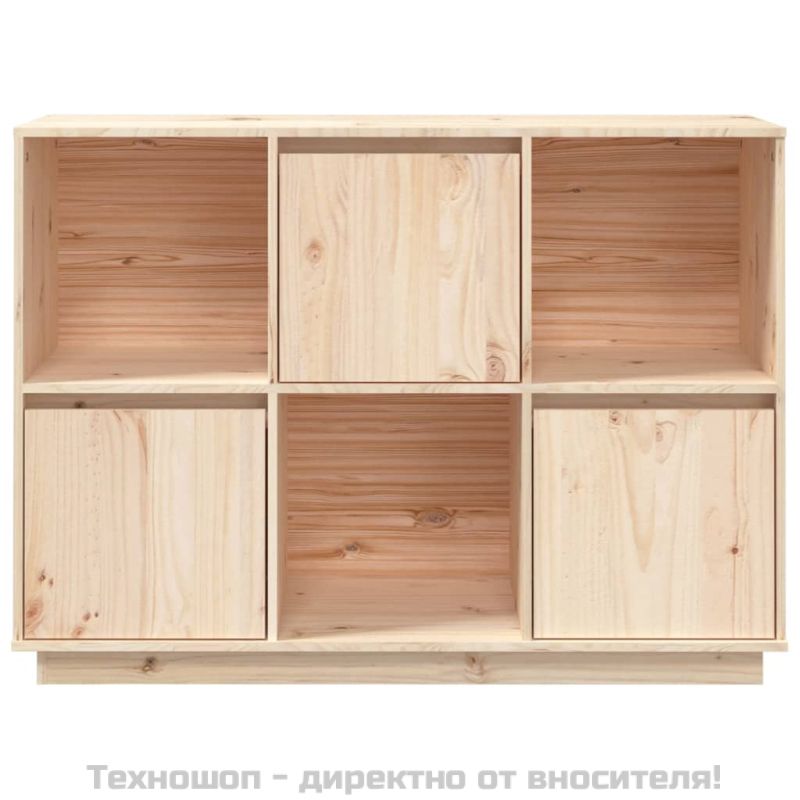 Насладете се на подредена всекидневна с този елегантен бюфет! Този практичен дървен бюфет е проектиран да отговори на вашите нужди за съхранение и е идеално допълнение към вашата стая. Масивна борова дървесина: Масивната борова дървесина е красив естествен материал. Боровата дървесина има прави шарки, а възлите придават на материала характерния му рустик вид.Достатъчно място за съхранение: Снабден с 3 врати и 3 отворени отделения, шкафът предоставя достатъчно място за съхранение, където да държите различни ваши вещи добре организирани и леснодостъпни.Модерен стил: Страничният шкаф добавя модерен стил към настоящия ви интериор. Модерният дизайн включва изчистени линии и минималистичен вид като част от стила на интериорния дизайн. Внимание:За да предотвратите преобръщане, този продукт трябва да се използва с предоставения анкер за стена.