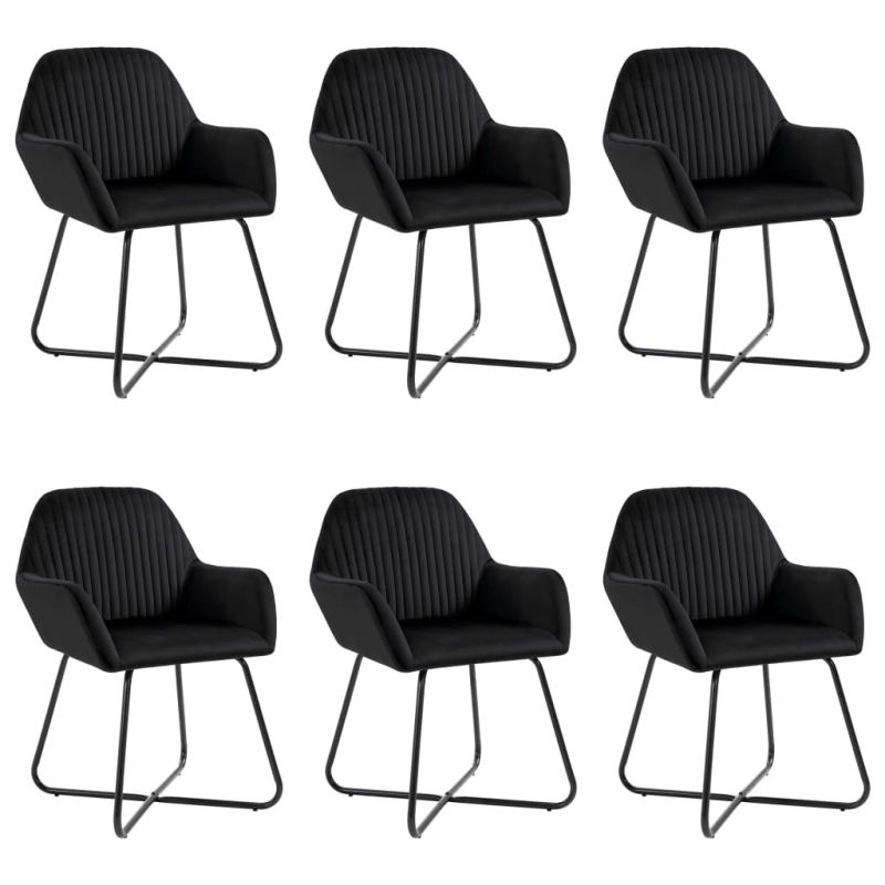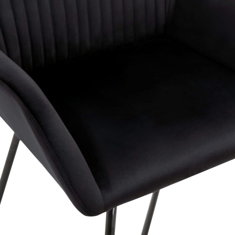 Добавете модерен щрих към вашата трапезария или хол с нашите удобни и стабилни трапезни столове! Изработен от качествено кадифе, този комплект от 6 трапезни стола е естетически и ергономично проектиран, за да бъде уютен акцент във вашия дом. Той осигурява удобно място за вашето семейство да вечеря в трапезарията или да чете и да си почива в хола. Благодарение на меката седалка, подлакътници и облегалка, нашият стол със сигурност ще ви донесе оптимален комфорт при седене. Освен това прахово боядисаните стоманени крака също осигуряват супер стабилност и гарантират отлична издръжливост на стола. Доставката включва 6 трапезни стола. Максимално 110 кг на седалка. Съобразете се с риска от открит огън и други източници на силна топлина в близост до продукта.