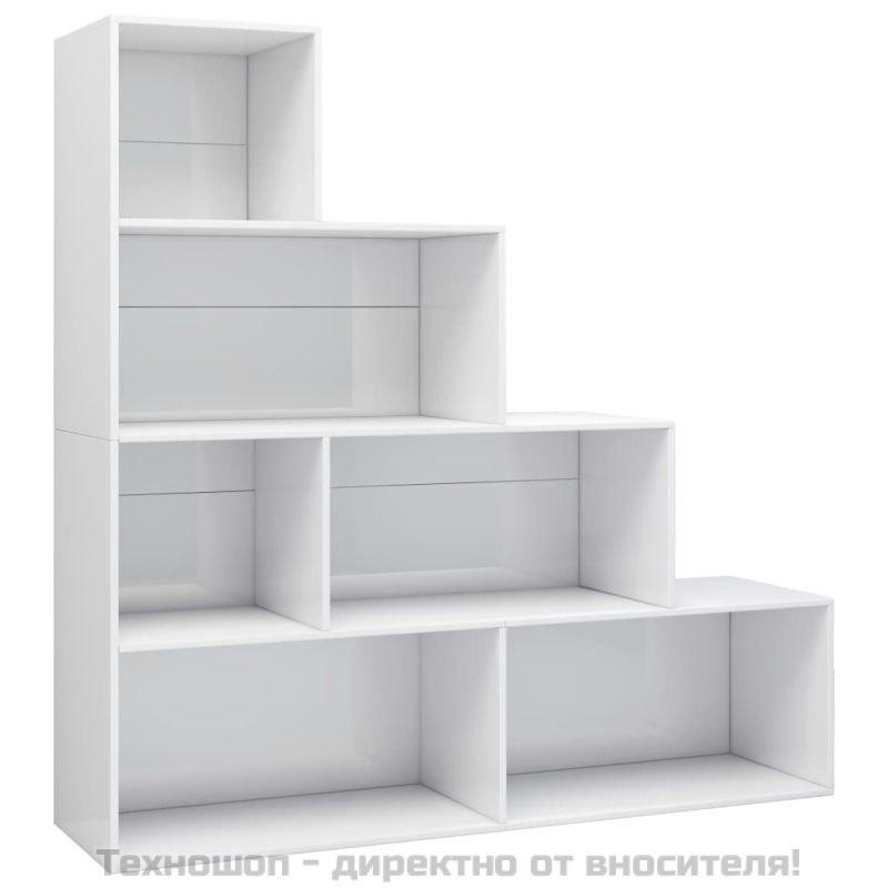 Библиотека/разделител за стая, бял гланц, 155x24x160 см, ПДЧ