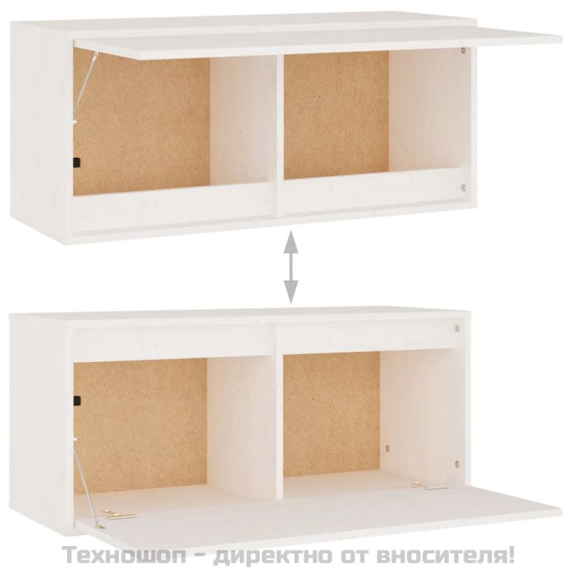 Стенен шкаф, бял, 80x30x35 см, борово дърво масив