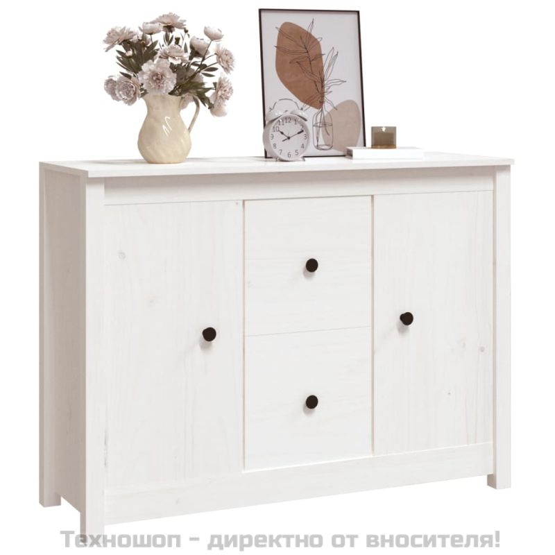 Този дървен сайдборд с минималистичен чар е проектиран да отговори на вашите нужди за съхранение и същевременно да добави уникален вид към стаята ви. Масивна борова дървесина: Масивната борова дървесина е красив естествен материал. Боровата дървесина е с продълговати шарки, а чеповете придават на материала характерния му рустик вид.Стабилна рамка: Дървената рамка осигурява здравина и стабилност.Достатъчно място за съхранение: Страничният шкаф има 2 чекмеджета и 4 отделения, предлагащи достатъчно място за съхранение за вашите списания, книги, DVD-та, мултимедийни устройства и други вещи от първа необходимост, добре организирани и достъпни.Здрав плот: Здравият плот е идеалното място за нареждане на саксийни растения, снимки в рамки и други декоративни елементи. Внимание:За да се предотврати преобръщане, този продукт трябва да се използва с предоставената приставка за стена. Забележка:Всеки продукт се доставя с ръководство за сглобяване в кашона за лесно сглобяване.