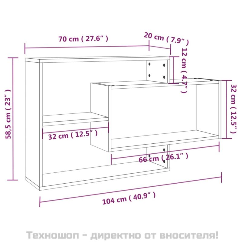 Стенен рафт, кафяв дъб, 104x20x58,5 см, инженерно дърво