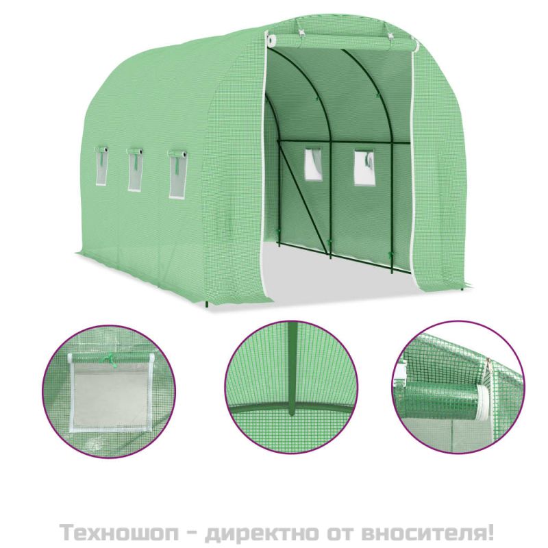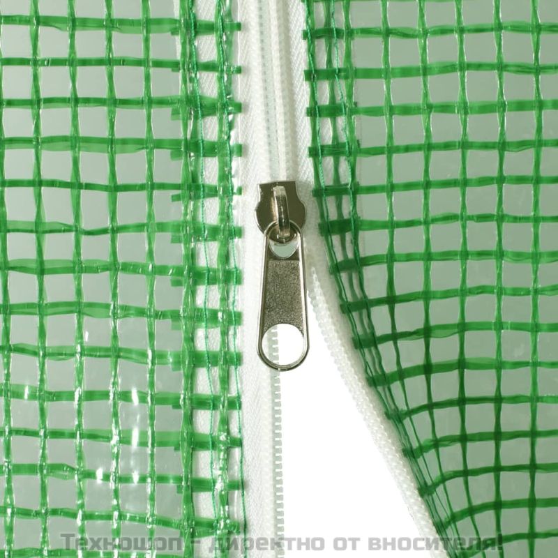 Тази просторна оранжерия може да побере значителен брой плодове, зеленчуци и растения. Парникът ще бъде чудесно решение за защита на вашите растения от вятър, дъжд, слънце и щети, нанесени от птици. Оранжерията е изработена от 140 г/м² PE мрежест плат, който е с 25% по-тежък от стандартния мрежест плат на много конкуренти. Следователно предотвратява още по-добре външни влияния. Тази оранжерия е със здрава и устойчива на ръжда поцинкована стоманена рамка за допълнителна стабилност. Тази оранжерия е оборудвана с прозорци 38x38 см за вентилация и една врата 100x185 см. Оранжерията се сглобява лесно. Препоръчваме да добавите фундамент за допълнителна здравина. Моля, обърнете внимание, че покривът на нашият парник не може да издържи на голямо натрупване на сняг. Предупреждение: Оранжерията не е строителна сграда или зимна градина, предназначена за отдих. Това е непостоянна самостоятелна селскостопанска инсталация, предназначена само за хоби градинарство. Децата трябва да бъдат наблюдавани, за да се гарантира, че не играят с уреда. Пазете децата далеч от зоната за сглобяване. Внимание: Прочетете внимателно инструкциите преди употреба и ги запазете за по-нататъшни справки.