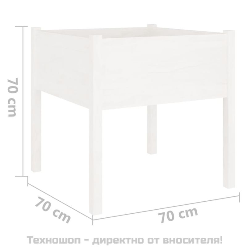 Градински сандък, бял, 70x70x70 см, бор масив