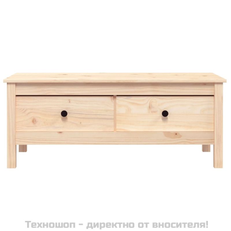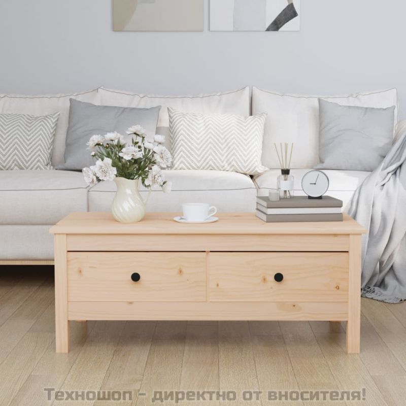 Тази класическа дървена масичка за кафе създава повече място за съхранение и е предназначена да бъде красиво допълнение към вашия дом. Масивна борова дървесина: Масивната борова дървесина е красив естествен материал. Боровата дървесина е с продълговати шарки, а чеповете придават на материала характерния му рустик вид. Стабилна рамка: Дървената рамка осигурява здравина и стабилност. Достатъчно място за съхранение: Страничната масичка има 2 чекмеджета, осигуряващи място за съхранение, за да държите различни вещи от ежедневието организирани и леснодостъпни. Здрав плот: Плотът на тази холна маса е перфектен за излагане на любимите ви декоративни елементи, рамки за картини и саксийни растения. Забележка:Всеки продукт се доставя с ръководство за сглобяване в кашона за лесно сглобяване.