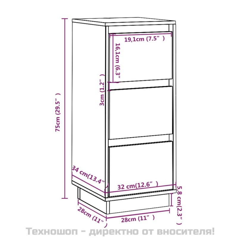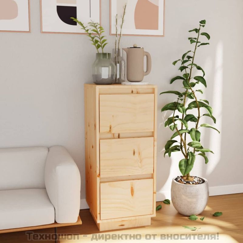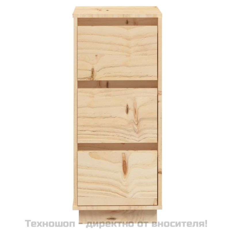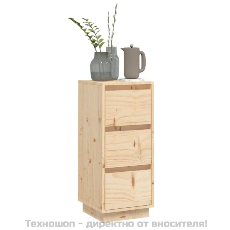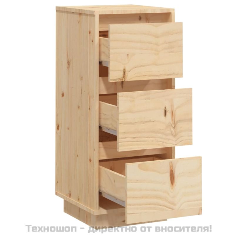 Този дървен бюфет внася нотка на елегантност и изискана визия във вашата всекидневна. Този страничен шкаф е изработен от масивна борова дървесина, което гарантира неговата издръжливост и стабилност. Шкафът с вратички осигурява достатъчно място за съхранение на книги, мултимедийни уреди и други предмети. Стабилният плот е идеален за подреждане на декоративни предмети, фоторамки и саксийни растения.