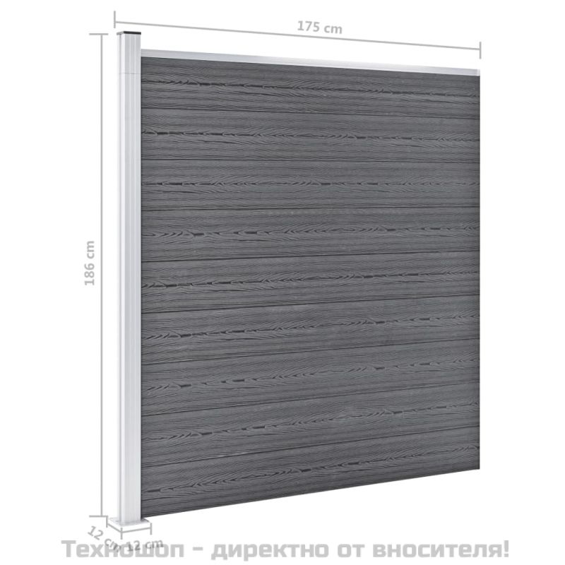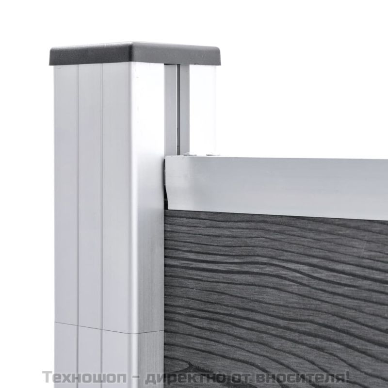 Нашият панелен комплект за ограда може да се използва като градинска бариера или жилищна ограда за неприкосновеност и сигурност. Тази WPC ограда има принт на дървесни шарки от едната страна и обикновен принт от другата страна, така че можете да изберете дизайна, който ви харесва повече. Нашият панел от дървонапълнен полимерен композит не изисква никаква допълнителна обработка, като лакиране или боядисване. Той е много издръжлив и устойчив на гниене или ръжда. Благодарение на алуминиевия горен профил, оградните панели могат да бъдат плътно прикрепени един към друг, което увеличава тяхната твърдост и здравина срещу удари. Проектирани като модулна система, ограждащите плоскости са лесни за инсталиране и ви позволяват да разширите оградата според желанието си. Тези стълбове разполагат с три слота, които правят възможно монтирането на оградата по различни начини, например в права линия (180 градуса), под прав ъгъл (90 градуса) или в "Т"-образна форма. Многофункционалните стоманени крачета могат да бъдат фиксирани по два начина. Първият е чрез завинтването им върху повърхност, като се използват предоставените анкери за земя. Вторият начин е чрез закрепването им в циментова основа, като се използват клиновете за земя (не са включени в доставката). Този ограден комплект се сглобява лесно. Доставката включва 9 WPC дъски, 1 стълб, 1 стоманена основа и 1 алуминиева шина.