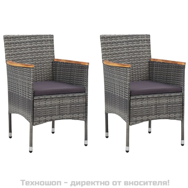 Градински трапезни столове, 2 бр, полиратан, сиви