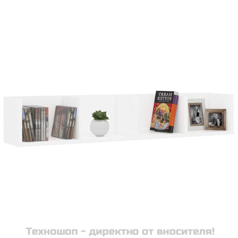CD стенен рафт, бял, 100x18x18 см, инженерно дърво