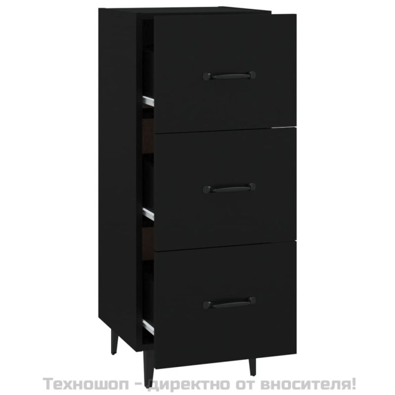Сайдборд, черен, 34,5x34x90 см, инженерно дърво