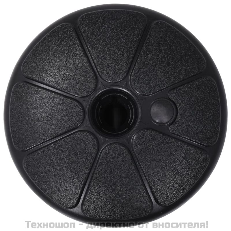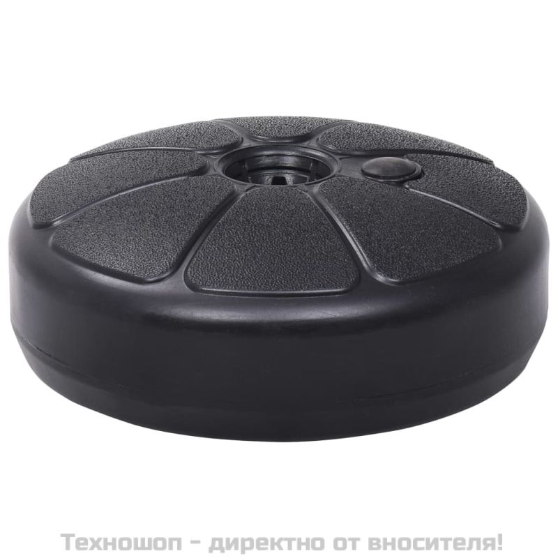 Тази основа за чадър е предназначена да се пълни с вода или пясък за баласт. Тя служи за здрава и стабилна основа за поддържане на чадъра ви. Стойката за чадър има вход и изход за вода с капачки. Тя може да се напълни с 15 л вода или с 18 кг пясък. Без пълнеж, основата на чадъра е лека, а дръжката я прави лесна за пренасяне и съхранение. С нашата основа вашият чадър ще остане стабилно на мястото си!