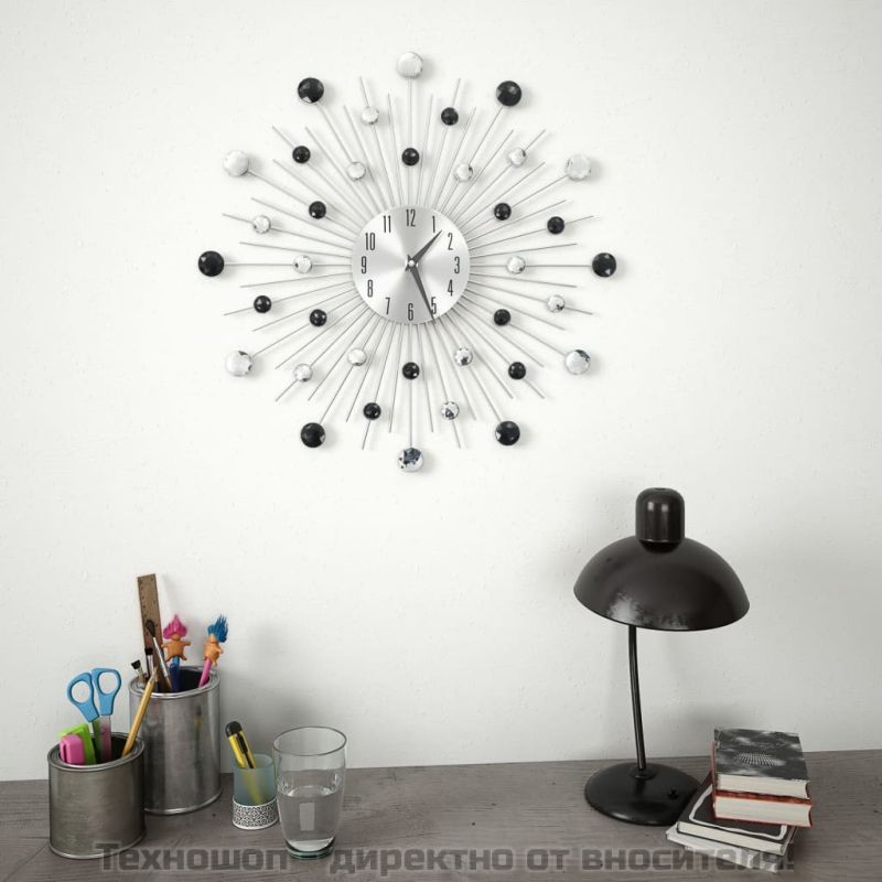 Нашият стенен часовник ще бъде чудесно допълнение към декора на вашата стая! Часовникът има здрава алуминиева рамка и е изключително издръжлив. Отличава се с красив дизайн с разпръскващи се на всички страни блестящи мъниста, формиращи елегантния стил на часовника. Снабден с висококачествен кварцов механизъм, часовникът е изключително точен в отмерване на времето. Благодарение на изчистените цифри, часовникът може да се вижда ясно дори от дълги разстояния. Лесно се окачва на стената. Часовникът ще придаде на интериора ви изчистен и спретнат вид. Този продукт не трябва да се изхвърля заедно с други битови отпадъци в Европейския съюз.