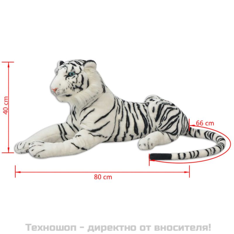 Пренесете "дивата природа" в стаята на вашето дете с нашата мека, XXL плюшена играчка за гушкане тигър с нейните реалистични детайли и впечатляващ външен вид! Тигърът е идеален като плюшен приятел или като реалистичен декоративен елемент. Има много детайлни черти от върха на опашката до възглавничките на лапите, а дунапренената формата на главата му придава реалистична форма. Висококачественият плюш я прави мека и удобна на допир. Благодарение на вниманието към детайла и отличното качество на изработката, тази плюшена играчка ще внесе екзотичен привкус във всяка среда.