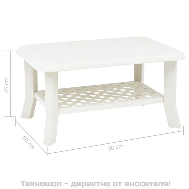 Маса за кафе, бяла, 90x60x46 см, пластмаса