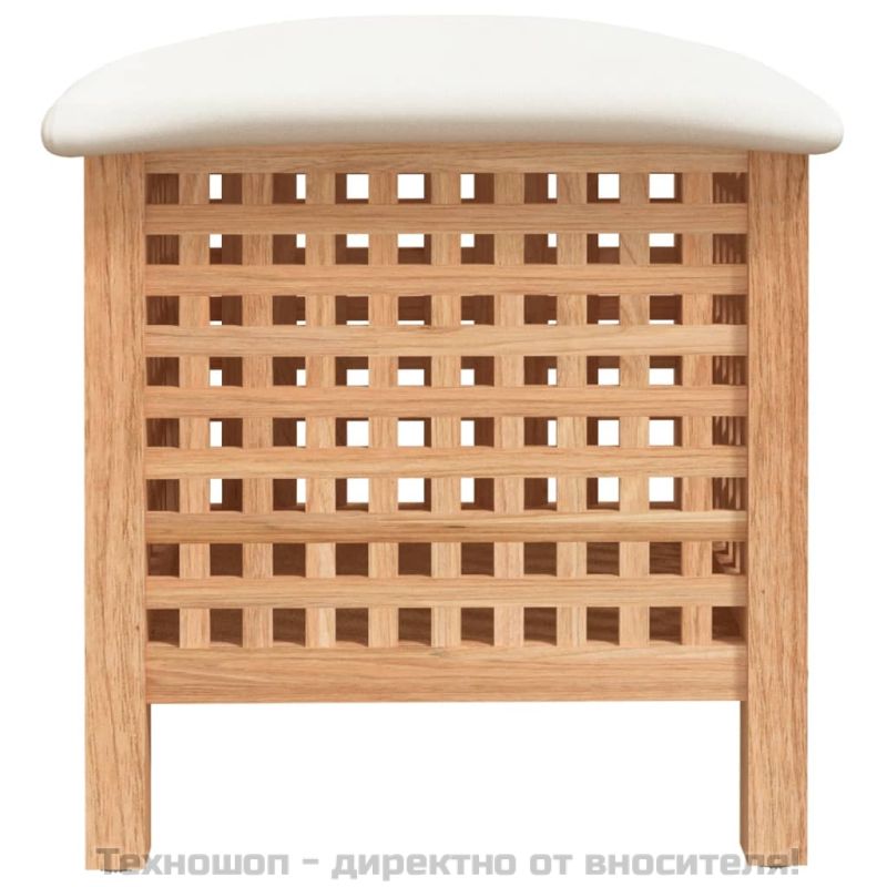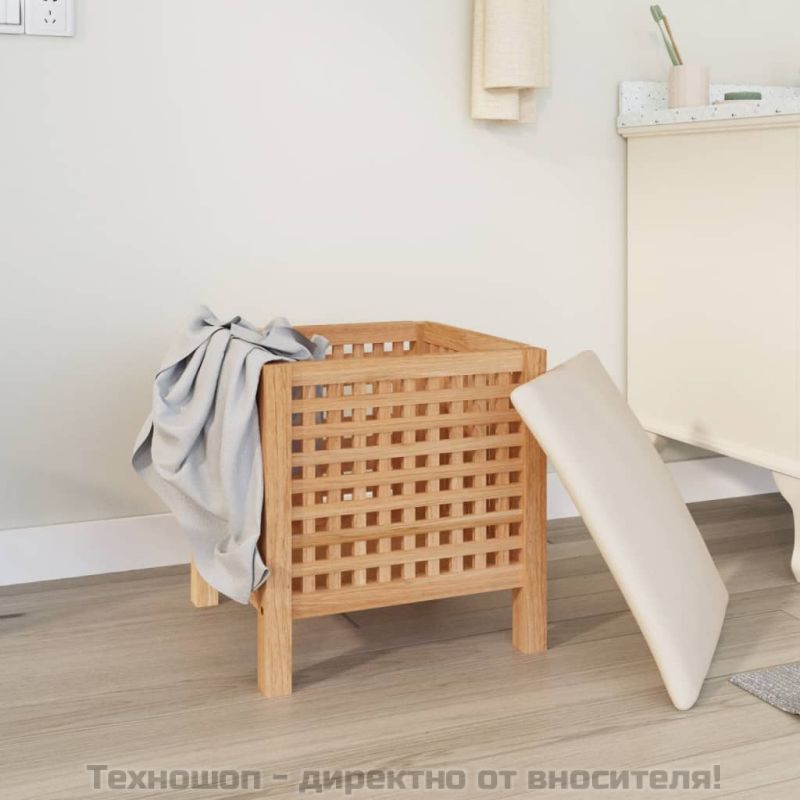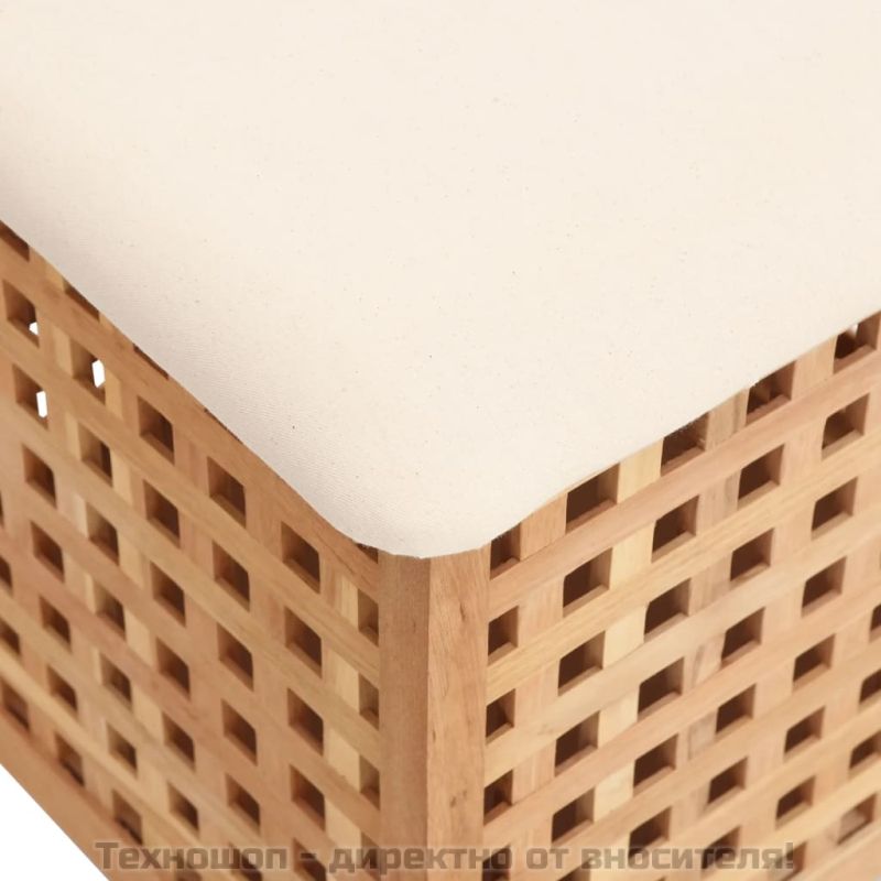 Дървената табуретка за баня с функция за съхранение е чудесно допълнение към вашата баня. Орехово дърво масив: Масивната орехова дървесина е плътна и здрава, което я прави много устойчива на износване. При това е добре известна със своя специфичен цвят и атрактивни шарки.Дизайн 2-в-1: Можете да използвате табуретката за баня като удобно място за сядане и същевременно като кош за пране, където да съхранявате вашите кърпи, одеяла и др.Достатъчно място за съхранение: Кошът за пране осигурява достатъчно място и за съхранение на ежедневното ви пране.Мека възглавница: Удобната подплата, която играе ролята и на капак на коша за пране, предлага удобна седалка за обуване на чорапи, грижа за ноктите на краката или бръснене.Страхотна вентилация: Столът за баня има решетъчен дизайн, което гарантира оптимална вентилация. Забележка: Всеки продукт се доставя с ръководство за сглобяване в кашона за лесно сглобяване.