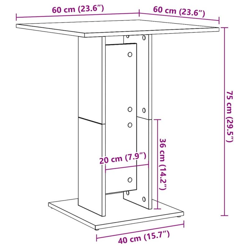 Начало Мебели Маси Кухненски и трапезни маси Бистро маса, опушен дъб, 60x60x75 см, инженерно дърво