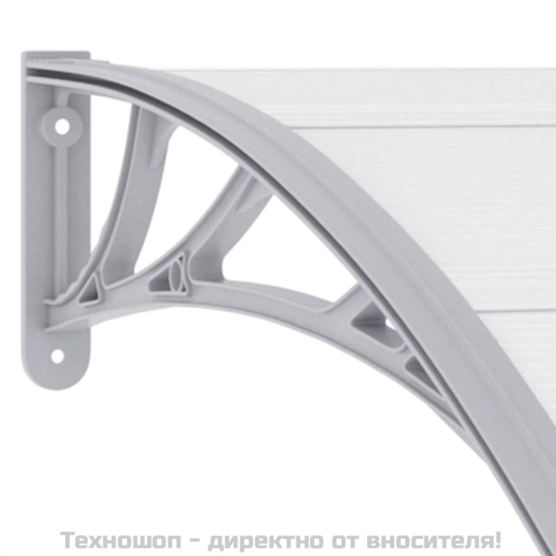 Този изящен навес за врата не само ще подобри външния вид на вашия имот, но и ще предпази входната ви врата или прозореца от валежи, без да блокира светлината. Той може да се използва както в жилищни, така и в търговски обекти. Кухите поликарбонатни листове са изключително трайни и устойчиви на атмосферни влияния и корозия. В допълнение, издържливата конструкция със здрави пластмасови подпори е изключително стабилна. Всички необходими монтажни аксесоари са включени за бърз и лесен монтаж. Моля, обърнете внимание, че покривът на нашата козирка за врата не издържа на силен снеговалеж.