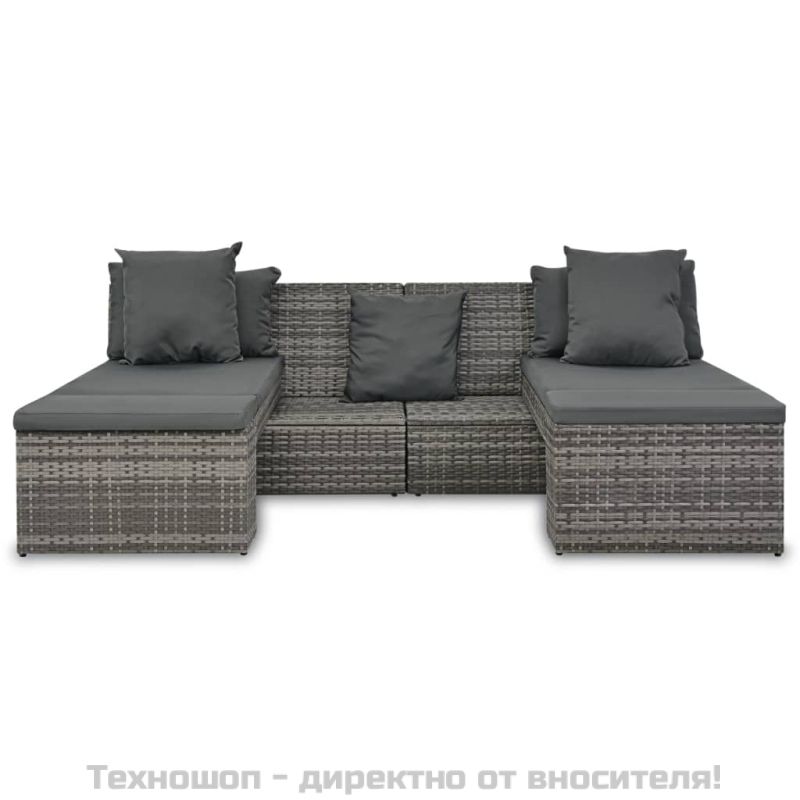 Градински комплект с възглавници, 4 части, сив полиратан