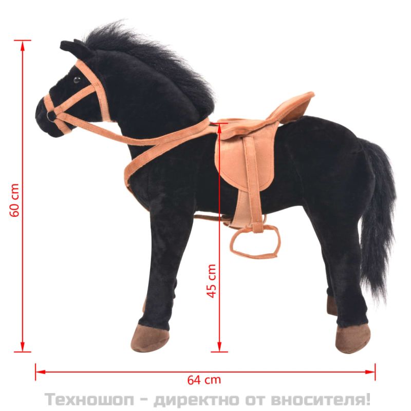 Плюшено детско конче за яздене, черно