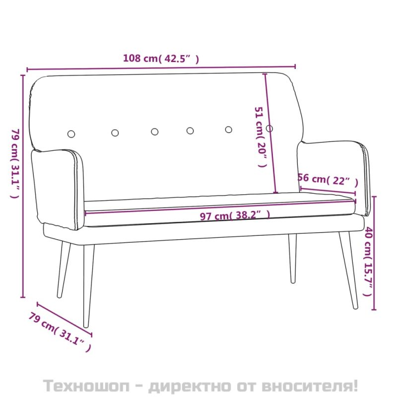 Тази пейка е отлично място за вашето време за разговори, четене, гледане на телевизия или просто за почивка. Тя е предназначена да бъде фокусна точка във вашия дом. Меко кадифе: Кадифето е мека и луксозна материя, която се отличава с гъста купчина равномерно отрязани влакна за гладка повърхност. Кадифената тъкан се отличава с меко усещане, което я прави приятна на допир.Удобно изживяване на седалката: Седалката, включваща тапицирана наклонена облегалка и дълбока седалка, е идеална за освобождаване на натрупаното напрежение и умора. Освен това дебело подплатената седалка и подлакътниците са много удобни.Здрава и стабилна рамка: Седалката на пейката се поддържа от метална рамка, което я прави здрава и стабилна. Забележка:Всеки продукт се доставя с ръководство за сглобяване в кашона за лесно сглобяване.