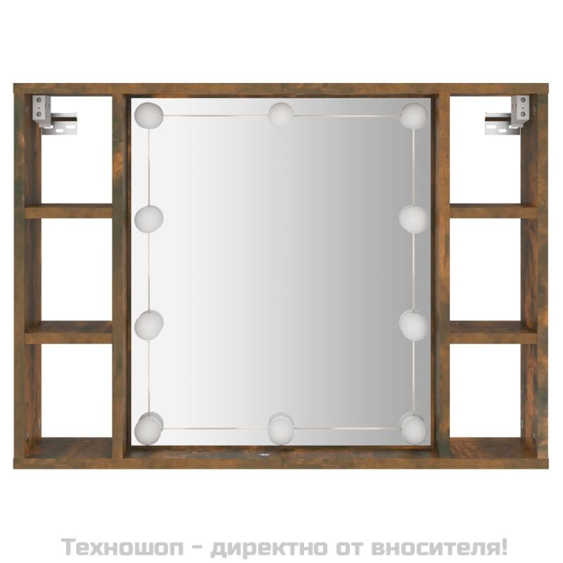 Огледален шкаф с LED, опушен дъб, 76x15x55 см