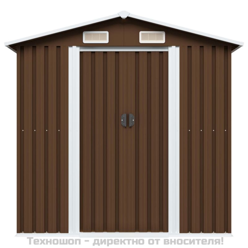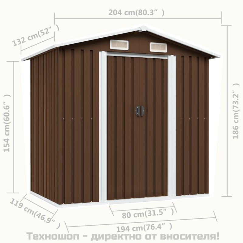 Градинска барака за съхранение, кафява, 204x132x186 см, стомана