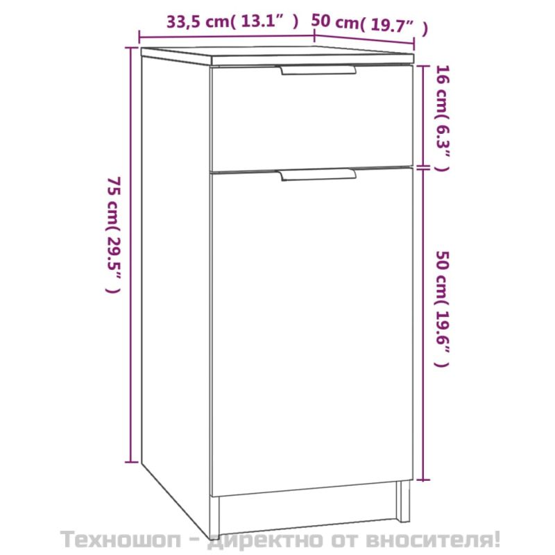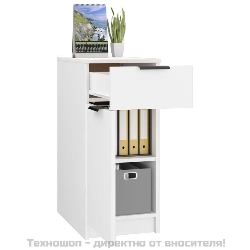 Шкаф за бюро, бял, 33,5x50x75 см, инженерно дърво