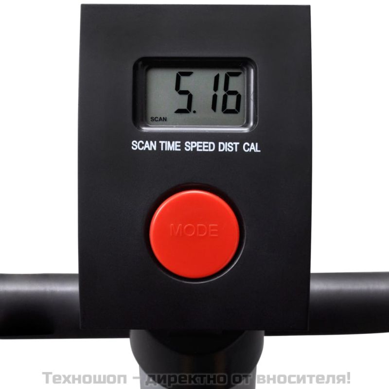 Този компактен, но стабилен фитнес велоергометър е чудесен за упражнения у дома. LCD дисплеят ще ви предостави цялата необходима информация, включително време, скорост, разстояние и изгорени калории. Седалката е напълно регулируема, за да е подходяща за всяка височина, което гарантира удобна тренировка. Бутонът за регулиране на съпротивлението +/- на велоергометъра позволява затягане на колана, за да се създаде по-интензивна тренировка. Снабден е с нехлъзгави педали с каишки. Предупреждение Това стационарно оборудване за обучение не е подходящо за цели, изискващи висока точност. Прочетете внимателно ръководството, преди да използвате продукта. Продуктът е домашен уред за фитнес. Консултирайте се с лекар преди употреба, в случай че имате някакви здравословни проблеми и за да предотвратите инциденти по време на тренировъчния процес. Ако се лекувате от сърдечно заболяване, кръвно налягане, прекомерен холестерол и т.н., е много важно да се консултирате с лекар преди тренировка. Винаги обръщайте внимание на здравословното си състояние преди тренировка. Неправилните методи на тренировка могат да причинят здравословни проблеми. Прекратете тренировката, ако имате някакъв дискомфорт, като главоболие, стягане в гърдите, неравномерен сърдечен ритъм, задух, замаяност и гадене и др. Консултирайте се и потърсете разрешението на вашия лекар, преди да започнете отново да тренирате. GPSR