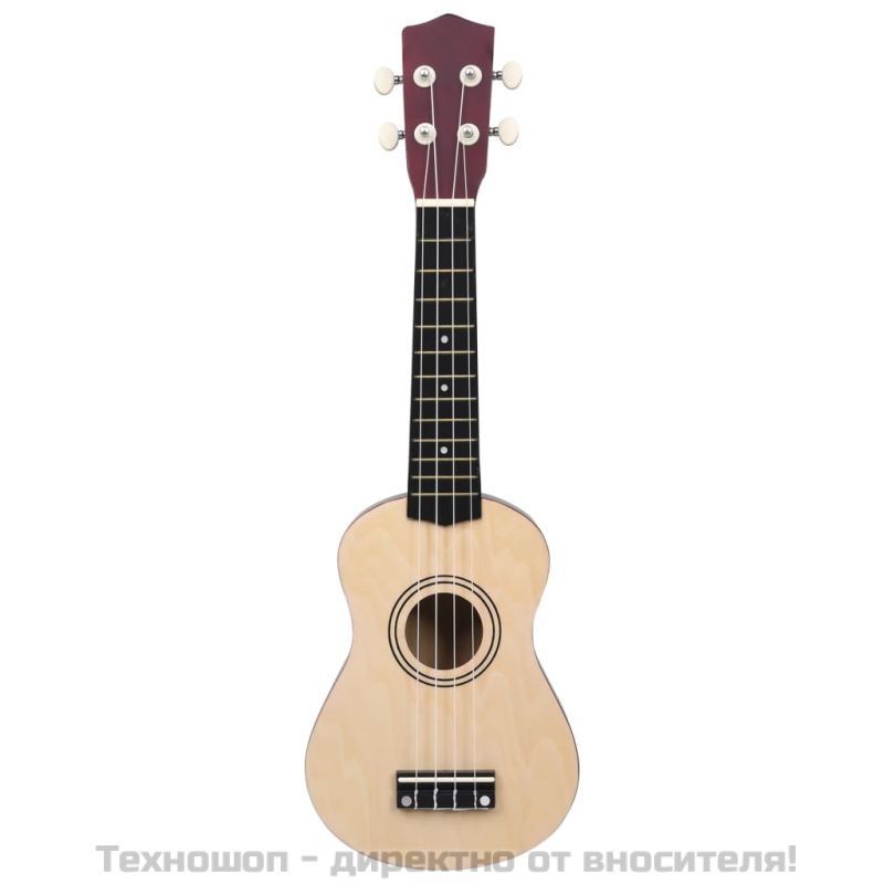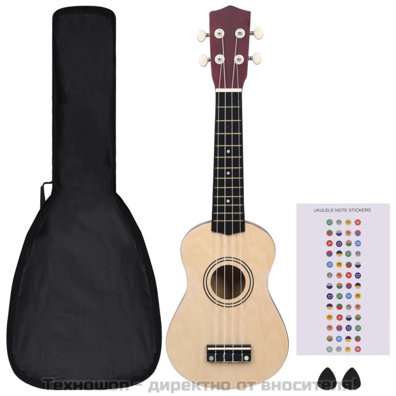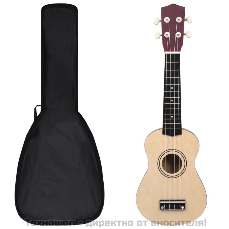 Комплект сопрано укулеле с калъф за деца естествен 21"