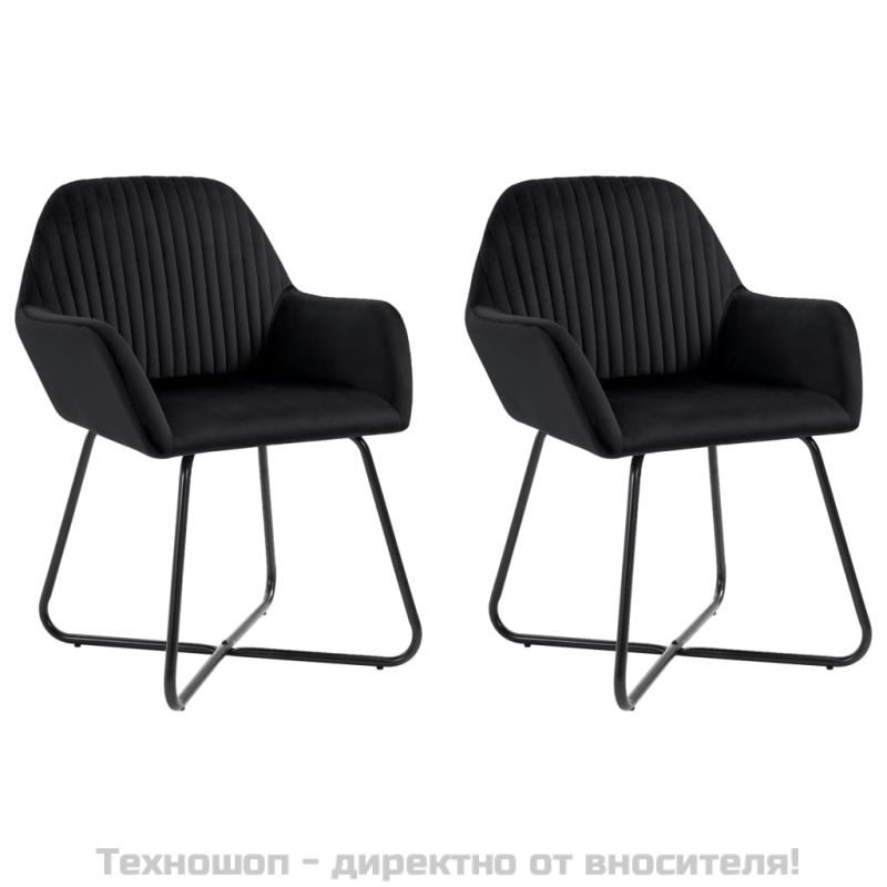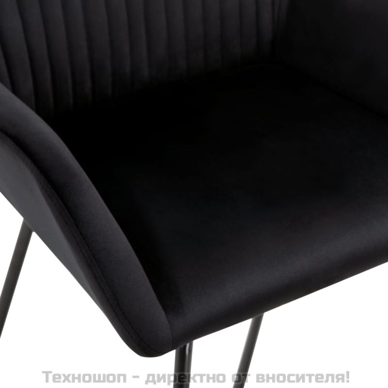 Добавете модерен щрих към вашата трапезария или хол с нашите удобни и стабилни трапезни столове! Изработен от качествено кадифе, този комплект от 2 трапезни стола е естетически и ергономично проектиран, за да бъде уютен акцент във вашия дом. Той осигурява удобно място за вашето семейство да вечеря в трапезарията или да чете и да си почива в хола. Благодарение на меката седалка, подлакътници и облегалка, нашият стол със сигурност ще ви донесе оптимален комфорт при седене. Освен това прахово боядисаните стоманени крака също осигуряват супер стабилност и гарантират отлична издръжливост на стола. Доставката включва 2 трапезни стола. Максимално 110 кг на седалка. Съобразете се с риска от открит огън и други източници на силна топлина в близост до продукта.